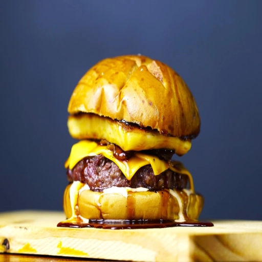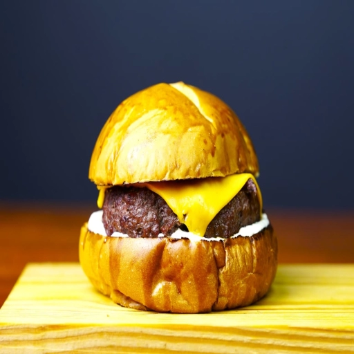 PÃO ARTESANL ,MAIONESE DOI CHEFF , 2 HAMBURGUER 160G DEFUMADO NA CHURRASQUEIRA DE TONEL ABAFO ,DUPLO CHEDDAR