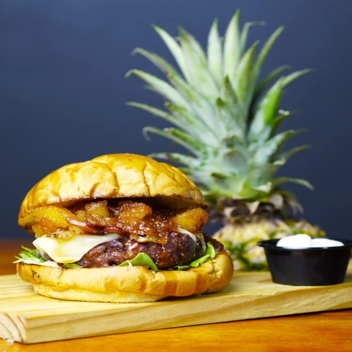 PÃO ARTESANAL ,HAMBURGUER 160G DEFUMADO NA CHURRASQUEIRA DE TONEL ABAFO ,MAIONESE DO CHEFF, GELEIA DE ABACAXI ,BACON ... Ver completo